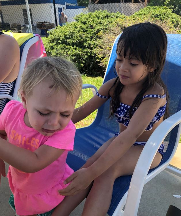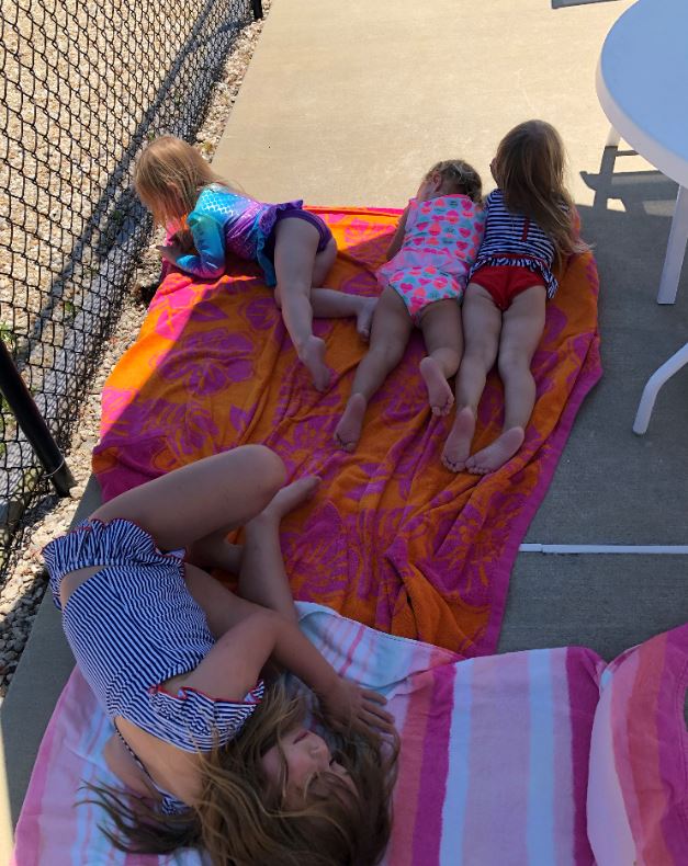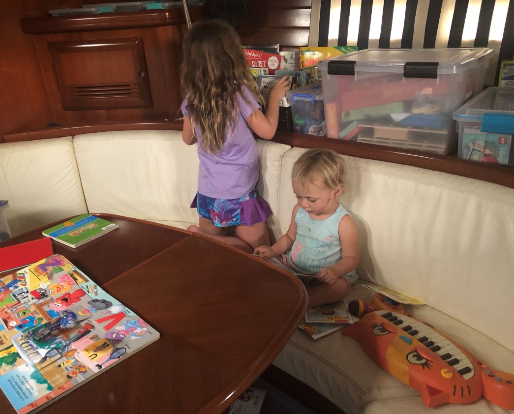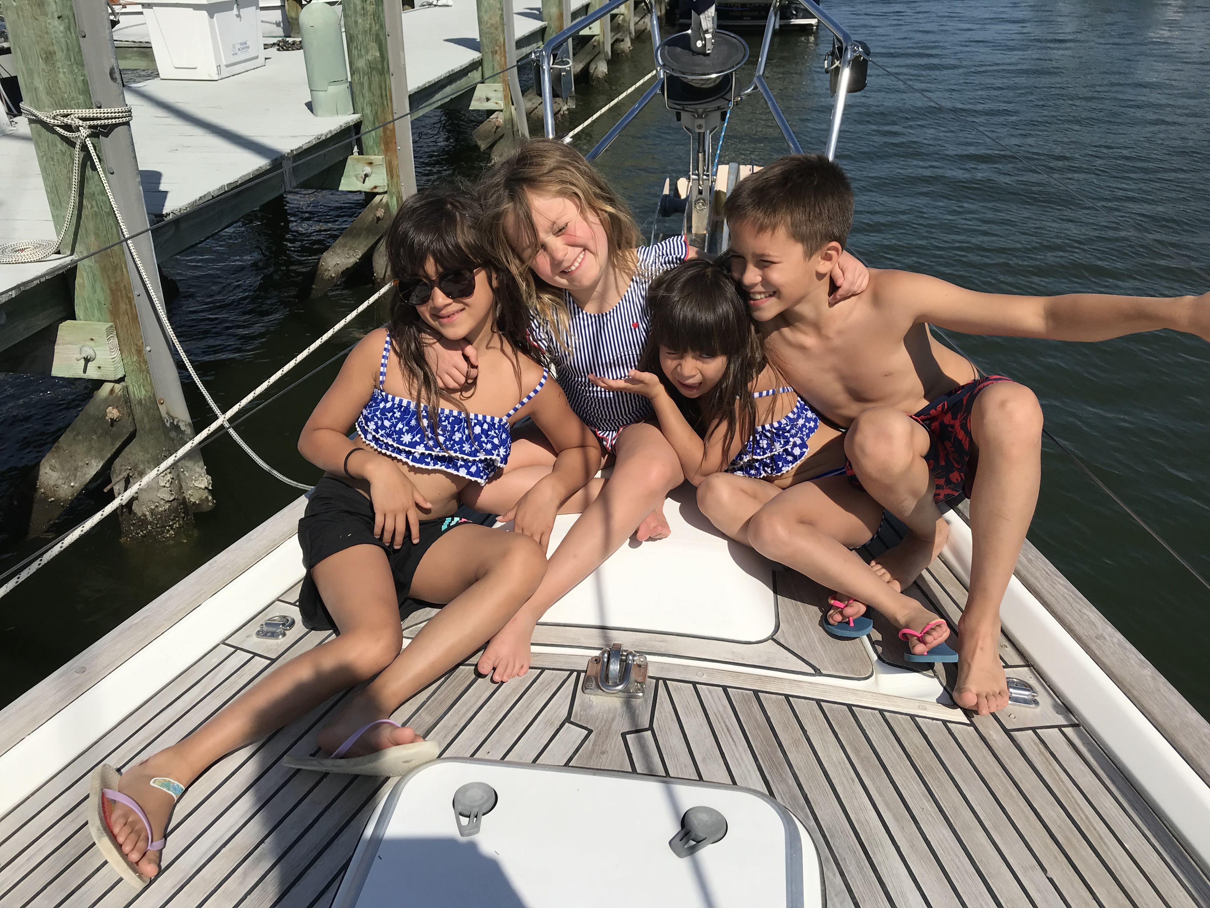 Our last days in Crown Grant were super stressful and we would not have been able to get moved out on time if it had not been for the help of our neighbors. We still needed to do more things in Richmond even after we were out of our house and our great neighbors opened their doors and guest rooms to us! Once we finally got ourselves to the boat and settled with the girls in Deltaville, we had a final visit from two neighbor families – some quality pool time, lunch, and a dinghy ride for the kids. We will miss our neighborhood friends and look forward to visiting with them in the future!