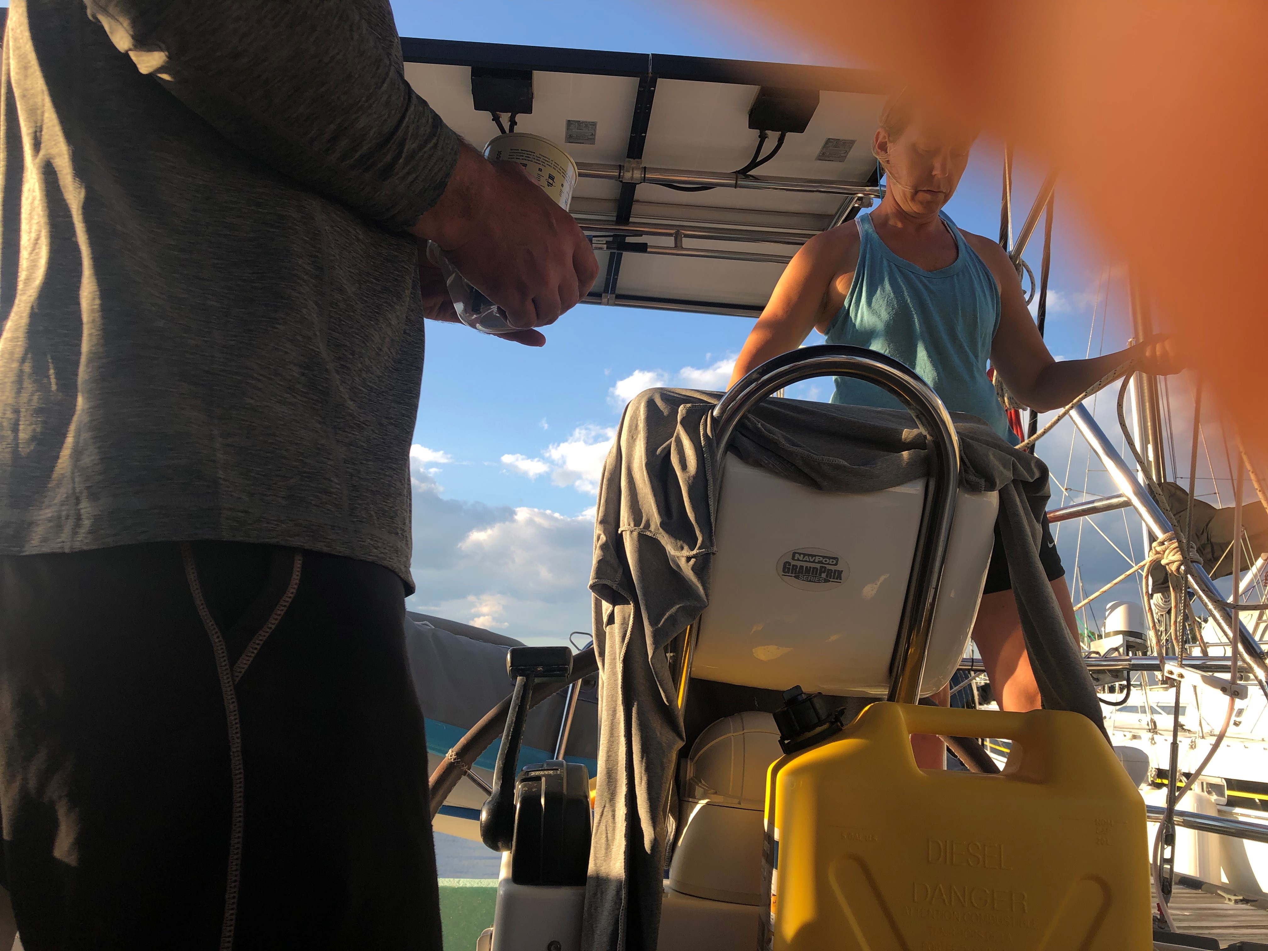 Once docked at a boat yard in Annapolis, I checked the fuel filter and it was completely clogged. All the bouncing around must have caused all the crud in my port tank to get stirred up. It was Friday afternoon and all the mechanics had left for the day so I it was up to me. I got a ride to West Marine, bought a filter and a spare, and headed back to the boat. I installed the new filter and had to flush the fuel line as well and when I turned the key, I was rewarded with the racket of a functioning diesel engine.
