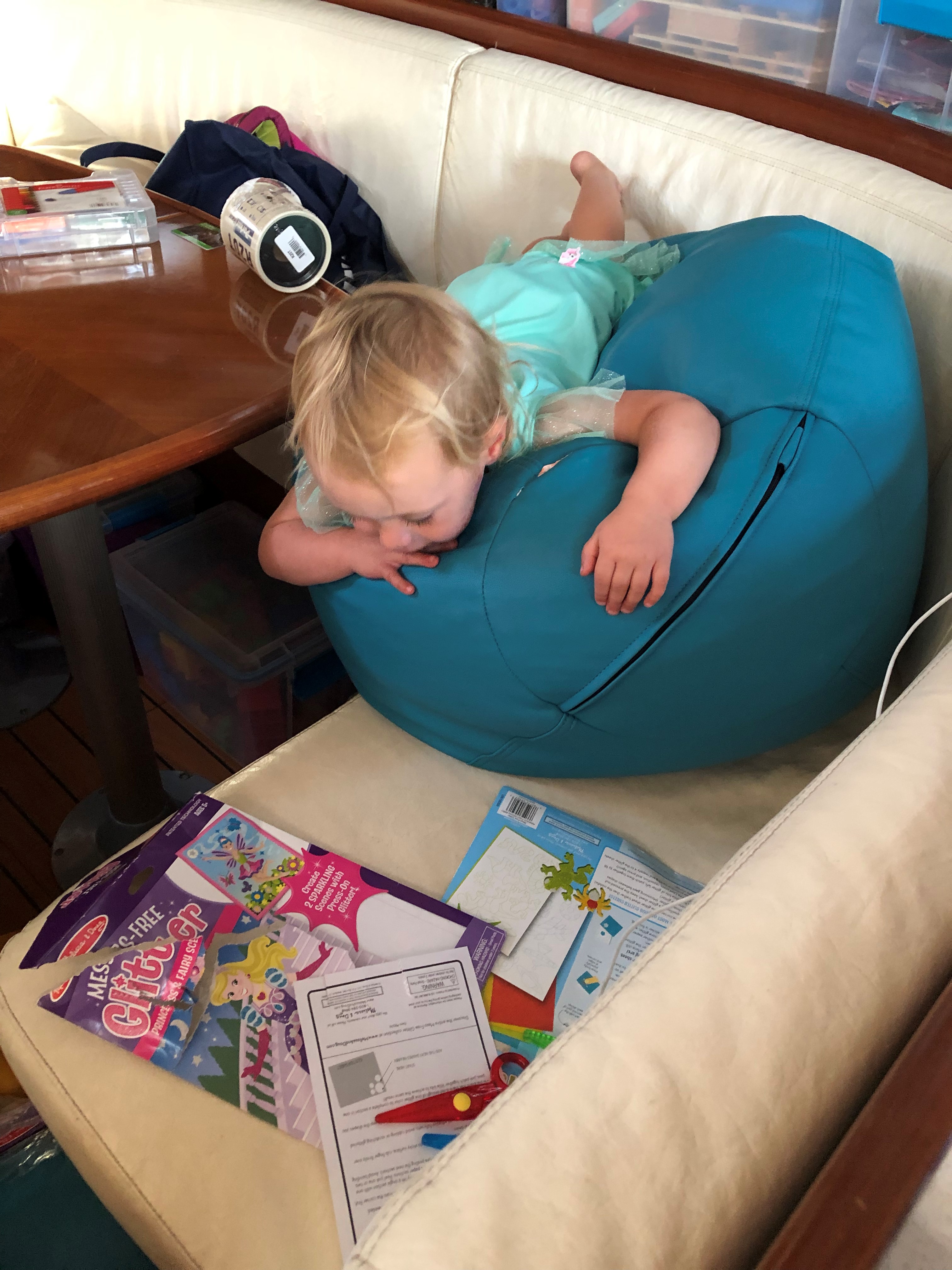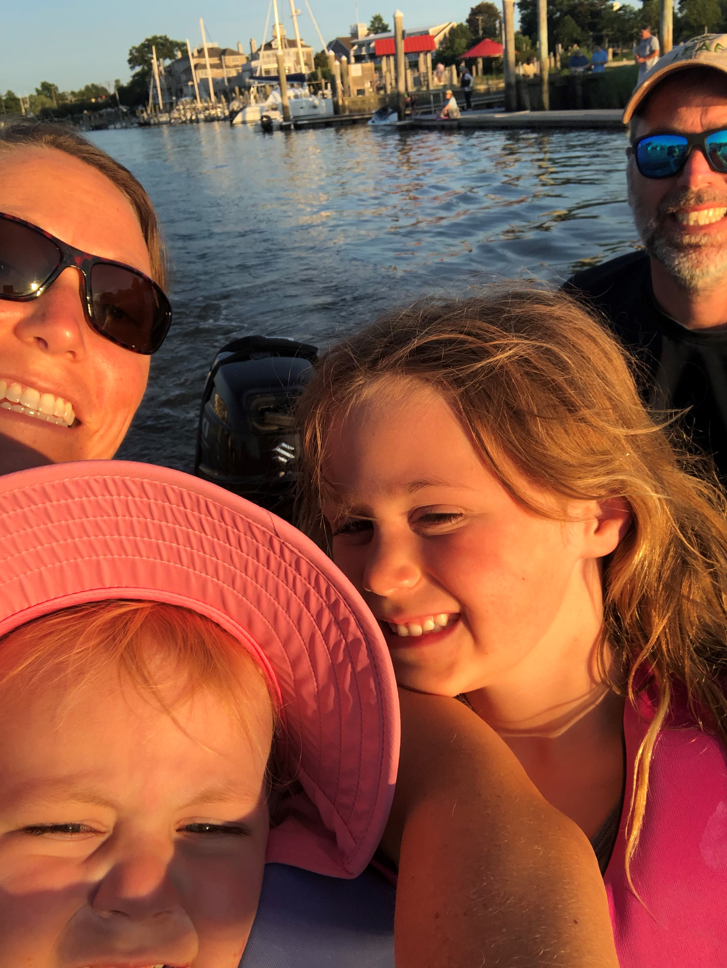 Our next stop after Belle Haven, VA was the east side of Kent Island to visit some friends who lived close by, but their kids’ swim meet that ran longer than expected and we anchored alone in Warehouse Creek. We were disappointed to not see them, but the afternoon and evening was spent swimming and kayaking in the water with the girls. We would have stayed in all night if not for the slow moving thunderstorm rolling toward us. The anchor was set to hold fast and the anchorage was well protected, so as the wind picked up, we moved to the cockpit to watch the rapidly moving wall of rain etch lines in the water. It’s reassuring to be in a hard blow and feel well protected in your boat; Beyzano seemed unimpressed and unperturbed by it all.