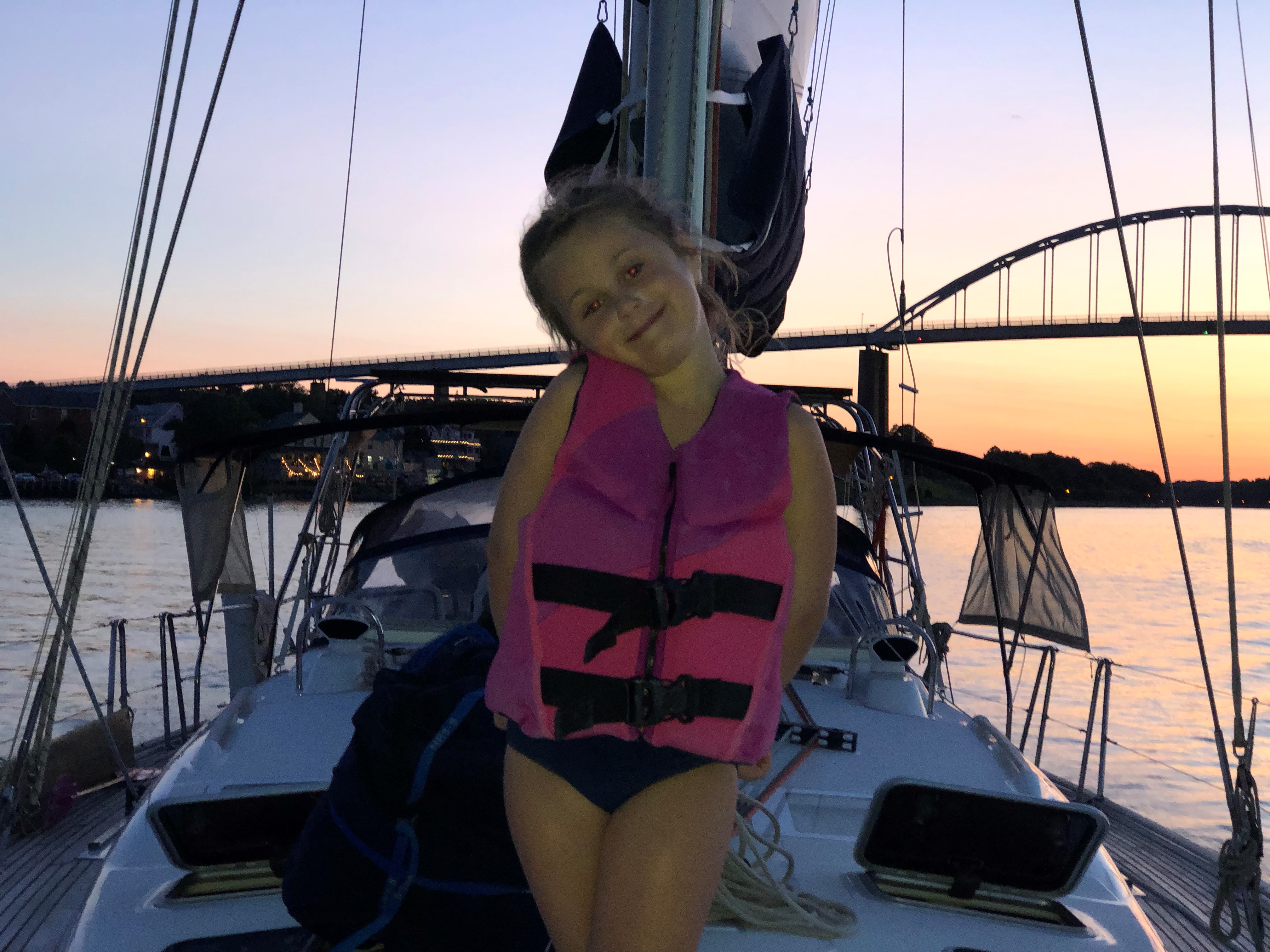 The next morning, the sun was up, the rain had gone, but the wind stayed. We had a bit of a trek south around Kent Island before turning north again to continue the journey. The closer we got to the Bay, the stronger the winds and the bigger the waves. Before we passed the last marker for that channel, the genoa was almost completely furled, we had 3 reefs in the main, and Beyzano’s bow was bashing into the waves. Shortly after the turn north, the wind began gusting to 35 kts and there were several coast guard reports of boats in distress. I left the engine going so we could pinch the wind because we were sailing 30 degrees off. 20 minutes later, our engine died. I fell off the wind which put us on a tract directly at the lee shore. I yelled down to Erin, prepared to tack and she popped up with a seasick Abby in her arms. We tacked and then she went below to switch the fuel tanks hoping it was just an air bubble in the line, but that was wishful thinking. The engine would only crank. When she came back up, she let me know we had another kid seasick down below. She couldn’t handle the kids and the helm at the same time, so there was no way for me to go below and check on the engine. This fact was strangely reassuring because I knew it was going to be the fuel filter and I didn’t have a spare. Even if I did, I had no desire to change it in the current sea state. Annapolis was close by so we decided to sail there, planning to toss out the anchor and get things squared away. The problem was that the wind was coming right down the Severn River and tacking from southwest to northeast to try and go northwest made for slow progress and was not enjoyable for anyone. With the boat heeling over and waves intermittently breaking into the cockpit, I told Erin to make the call to Tow Boat US. It felt like being defeated for a sailboat to be towed in just because of a failed engine, but after hooking up the lines to the bow and being towed into the harbor, it also felt like the right choice. We know Annapolis and had plenty of help there if we needed it. After we got into the harbor, the tow boat Captain and I talked about the conditions we were just in, the several Coast guard calls for a non-responsive boat and overturned center console power boat, as well as my trouble getting his bridle hooked up to Beyzano. “Didn’t matter how you did it,” he said “With the conditions out there you just needed to get it on however was possible”.