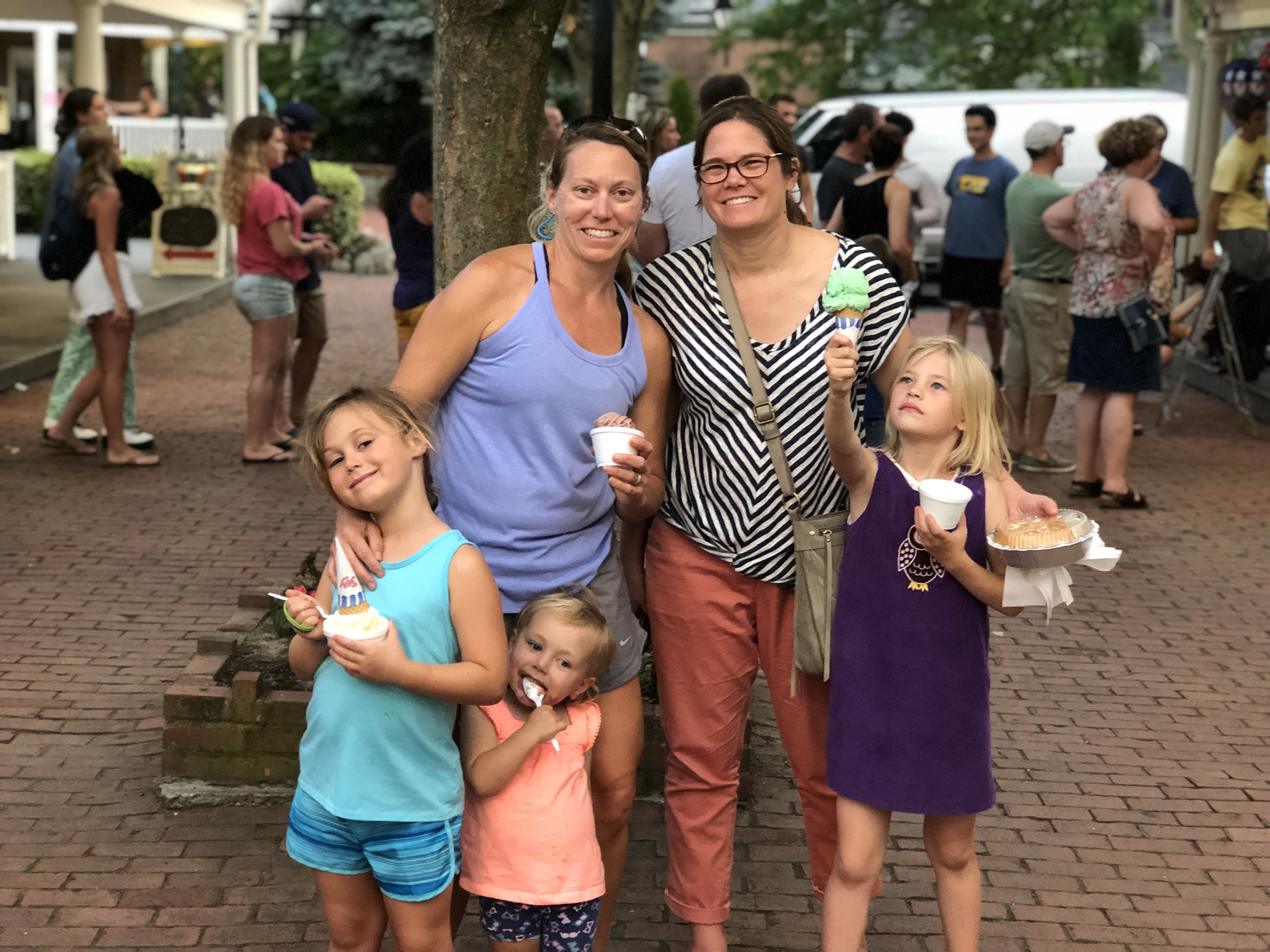 Our main reason to push to Port Jefferson was to catch up with our friends, Janet, Drew, Hope, and George Kirkpatrick, before they headed off for a year sabbatical in Tasmania. We literally caught up with them the day before they were leaving their house and heading off for their adventure – not at all a stressful time for them! After a day of fueling up and exploring town a bit, we met up with Janet, Hope, and George at a beach in town and the kids had a blast exploring while the adults cringed since the beach area wasn’t exactly pristine. Drew met us a bit later and we decided to walk to grab a beer at the brewery and then pizza at The Pie. After post dinner ice cream, we said our goodbyes to the Kirkpatricks and took the dinghy back to Beyzano. We had some tired kiddos and all were glad to be back home and to get to bed. Our plan was to trek all the way to Block Island the next day so sleep was definitely in order.