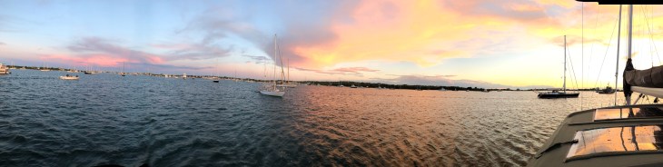 It may be packed and crazy to get into during holiday weekends, but it is a large anchorage that is well protected, has plenty of depth, and a bottom that holds well. Within a 10-15 minute dinghy ride, you can access: a) multiple beaches, both on the pond and on the ocean side with access by way of Dinghy Beach; b) several restaurants with perfect sunset locations; c) taxis to get you anywhere else you might want to go on the island. While on the pond, amenities come to you with a water boat, free pumpout service, and Aldo’s bakery with breakfast treats and evening appetizers. Whether anchored or on a mooring, the Great Salt Pond was a wonderful place to spend time.
